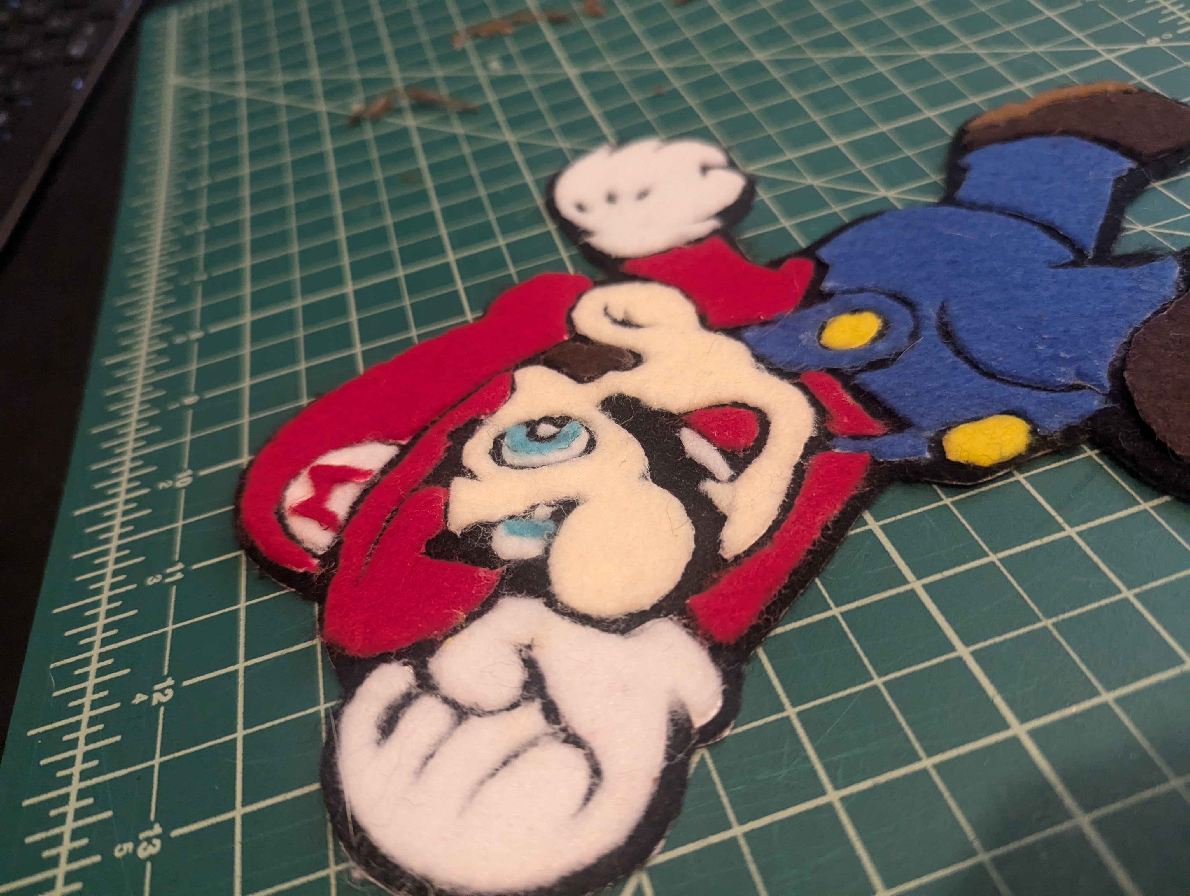 A couple art projects including framed drawings from my great-grandfather's patents, and a Mario made from felt for my son.
